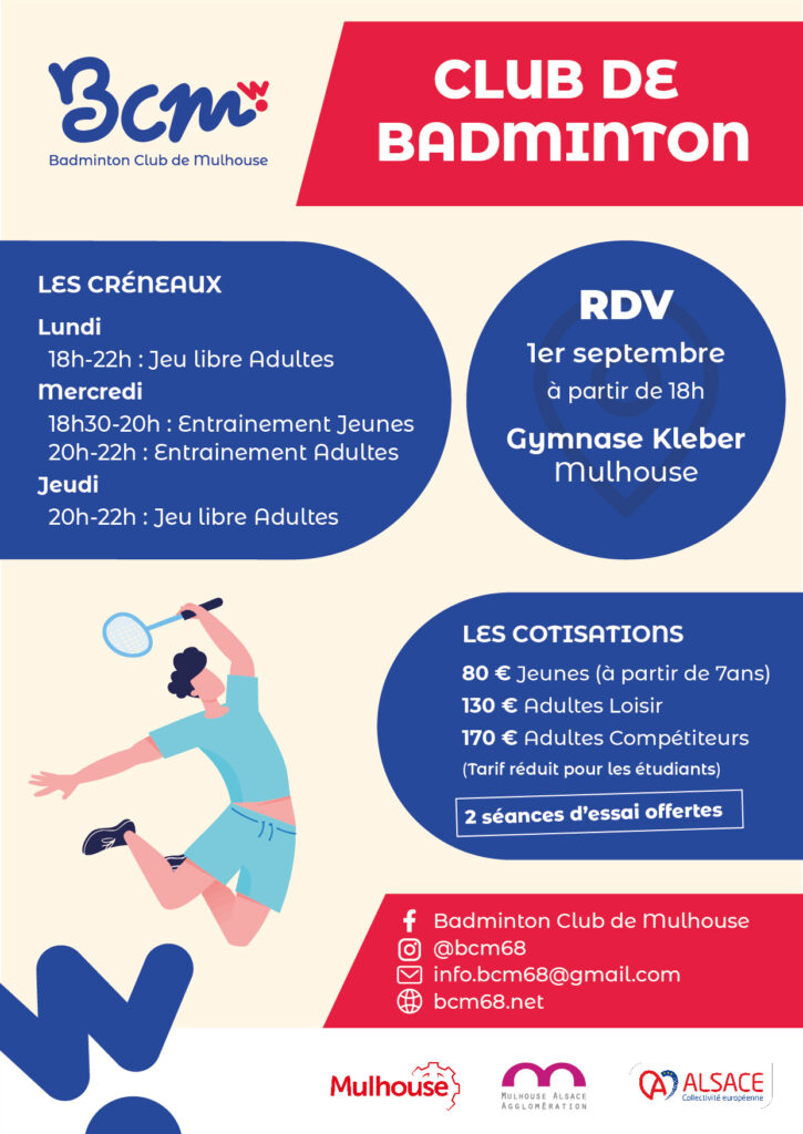 Depuis 1989, le Badminton Club de Mulhouse est un incontournable dans le paysage sportif haut-rhinois. Fort de ses nombreuses années d’expérience, le club s’impose comme un acteur majeur dans le développement et la promotion du badminton.